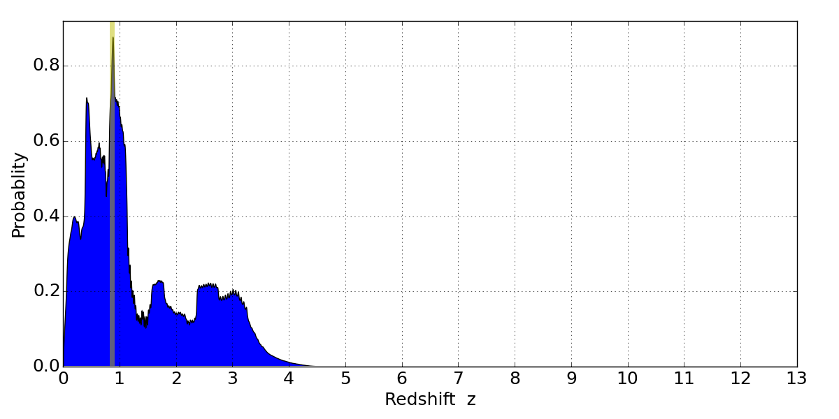 Best viewed in a wide browser window (1200 pixels or more). Download SED & P(z) plots to view larger versions.