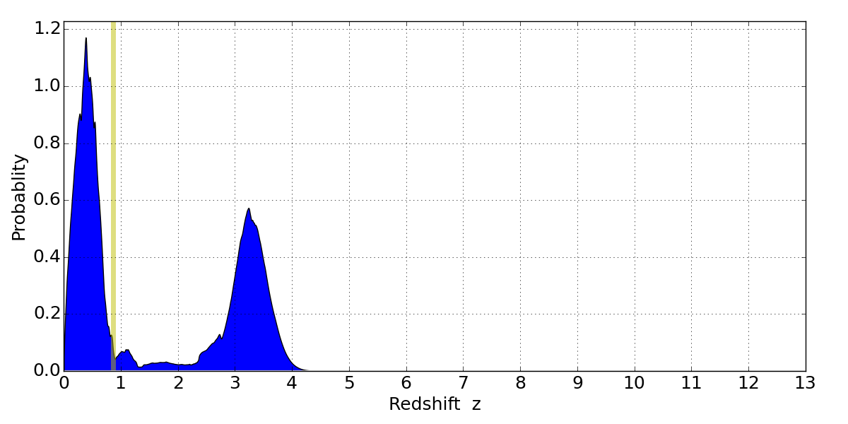 Best viewed in a wide browser window (1200 pixels or more). Download SED & P(z) plots to view larger versions.