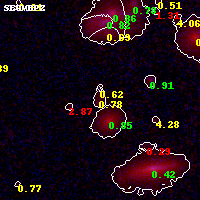 Object #2255 x,y = (3906, 2567) RA, Dec = (01:02:55.176, -49:16:47.64) = (15.72990, -49.27990) BPZ = 0.779 [0.624--0.926] type = 9.00 (SB2_B10) chisq2 = 0.28 ODDS = 0.54 z_cluster = 0.870