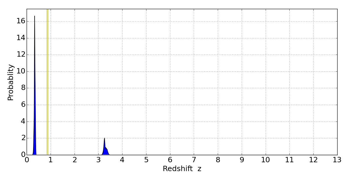 Best viewed in a wide browser window (1200 pixels or more). Download SED & P(z) plots to view larger versions.