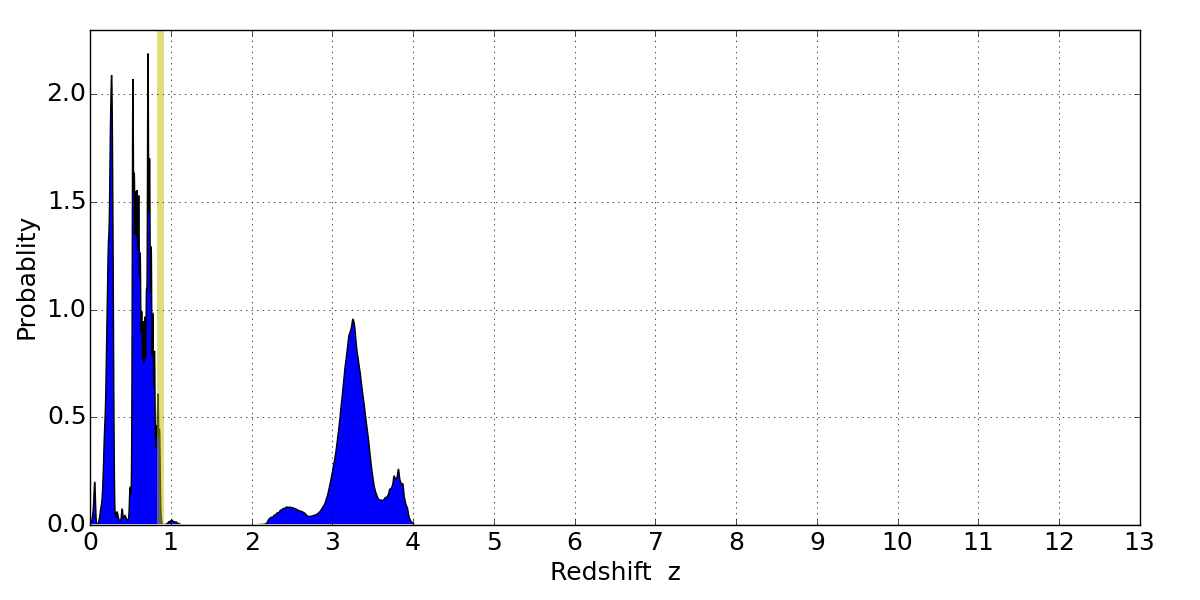 Best viewed in a wide browser window (1200 pixels or more). Download SED & P(z) plots to view larger versions.