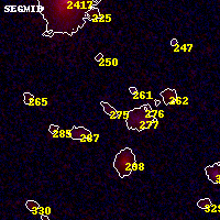 Object #275 x,y = (4793, 4885) RA, Dec = (01:02:49.752, -49:14:28.68) = (15.70730, -49.24130) BPZ = 3.451 [3.304--3.588] type = 10.10 (SB3_B10 - SB11_A_0_l) chisq2 = 1.49 ODDS = 0.98 z_cluster = 0.870