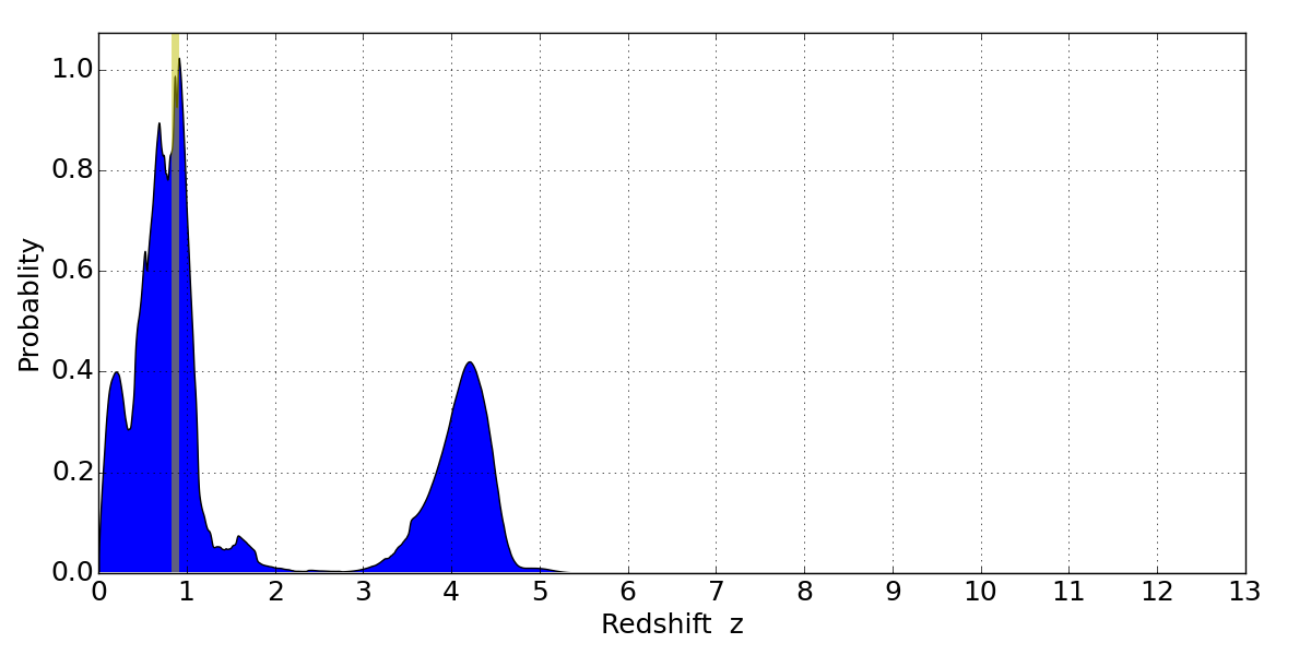 Best viewed in a wide browser window (1200 pixels or more). Download SED & P(z) plots to view larger versions.