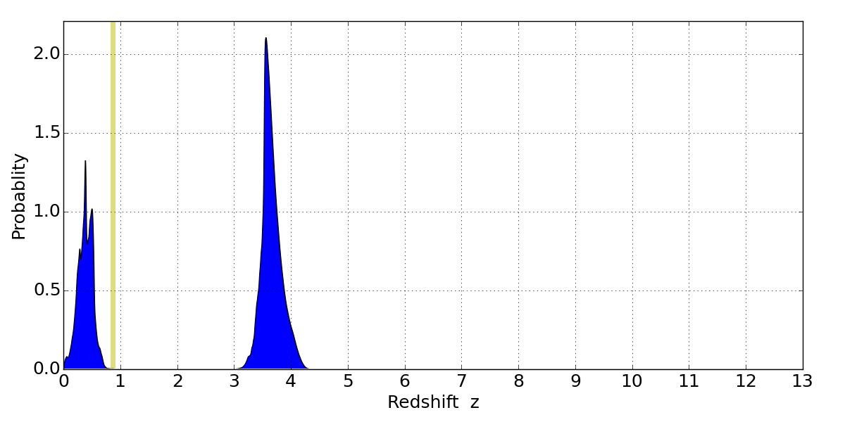 Best viewed in a wide browser window (1200 pixels or more). Download SED & P(z) plots to view larger versions.