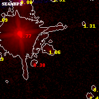 Object #4 x,y = (3591, 1934) RA, Dec = (01:02:57.120, -49:17:25.80) = (15.73800, -49.29050) BPZ = 1.060 [0.710--1.244] type = 6.90 (Scd_B10 - Sbc_B10) chisq2 = 0.42 ODDS = 0.72 z_cluster = 0.870