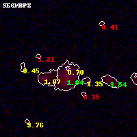 Object #417 x,y = (3376, 4656) RA, Dec = (01:02:58.416, -49:14:42.36) = (15.74340, -49.24510) BPZ = 0.697 [0.474--0.865] type = 10.30 (SB3_B10 - SB11_A_0_l) chisq2 = 0.74 ODDS = 0.45 z_cluster = 0.870