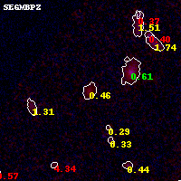 Object #434 x,y = (3028, 4642) RA, Dec = (01:03:00.552, -49:14:43.08) = (15.75230, -49.24530) BPZ = 0.461 [0.354--0.528] type = 3.00 (Ell5_A_0) chisq2 = 0.27 ODDS = 0.82 z_cluster = 0.870