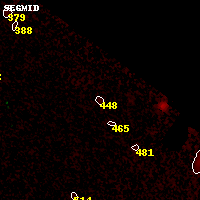 Object #448 x,y = (5694, 4633) RA, Dec = (01:02:44.232, -49:14:43.80) = (15.68430, -49.24550) BPZ = 1.848 [0.283--3.437] type = 8.90 (SB2_B10 - SB1_B10) chisq2 = 0.28 ODDS = 0.18 z_cluster = 0.870