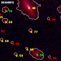 Object #461 x,y = (4156, 4609) RA, Dec = (01:02:53.640, -49:14:45.24) = (15.72350, -49.24590) BPZ = 0.768 [0.612--5.310] type = 2.70 (Ell5_A_0 - Ell6_A_0) chisq2 = 0.44 ODDS = 0.53 z_cluster = 0.870