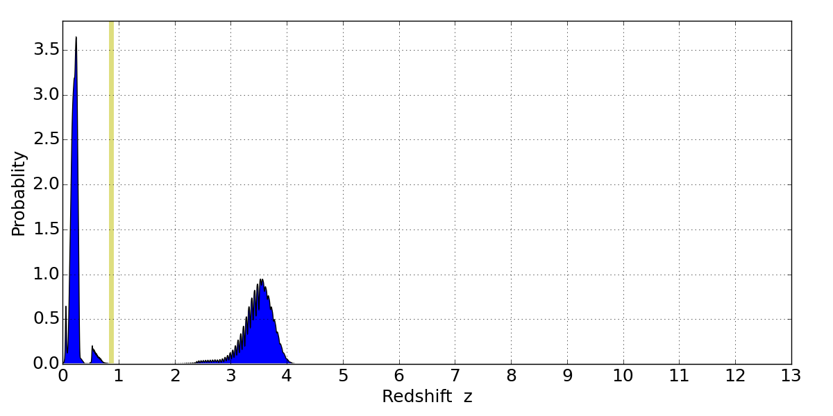 Best viewed in a wide browser window (1200 pixels or more). Download SED & P(z) plots to view larger versions.