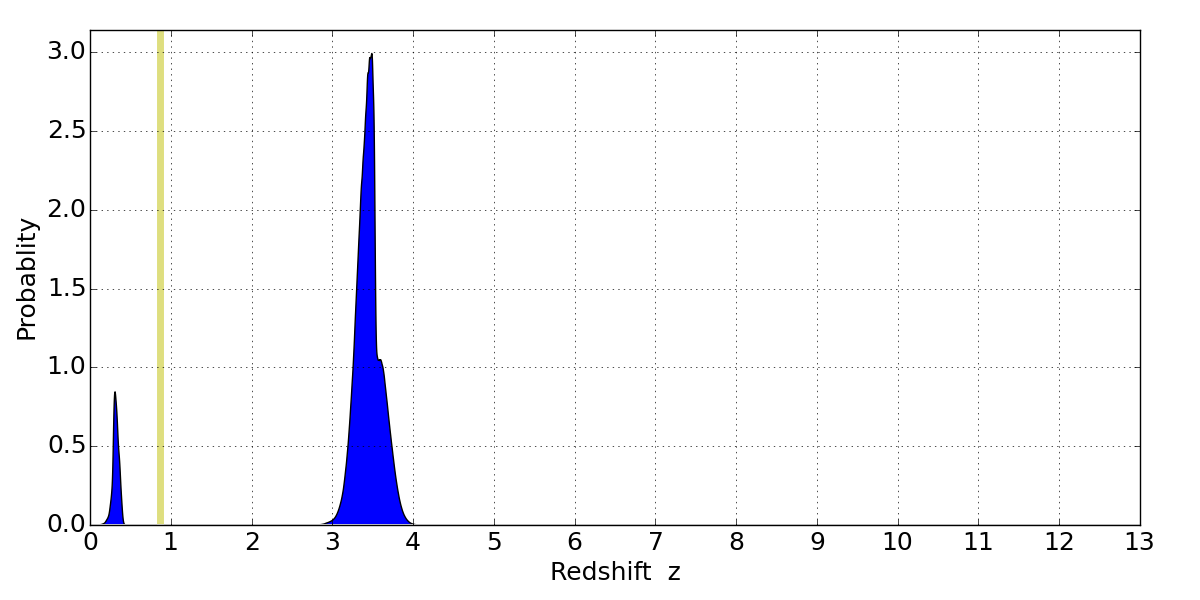 Best viewed in a wide browser window (1200 pixels or more). Download SED & P(z) plots to view larger versions.