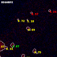 Object #559 x,y = (2914, 4498) RA, Dec = (01:03:01.248, -49:14:51.72) = (15.75520, -49.24770) BPZ = 0.885 [0.616--0.948] type = 9.30 (SB2_B10 - SB3_B10) chisq2 = 0.97 ODDS = 0.47 z_cluster = 0.870