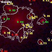 Object #574 x,y = (4385, 4383) RA, Dec = (01:02:52.248, -49:14:58.92) = (15.71770, -49.24970) BPZ = 1.345 [0.905--7.006] type = 2.00 (Ell6_A_0) chisq2 = 0.34 ODDS = 0.24 z_cluster = 0.870