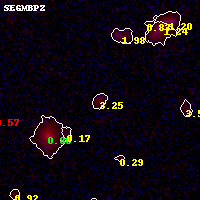 Object #680 x,y = (3265, 4391) RA, Dec = (01:02:59.112, -49:14:58.20) = (15.74630, -49.24950) BPZ = 3.246 [3.008--3.416] type = 7.90 (SB1_B10 - Scd_B10) chisq2 = 0.53 ODDS = 0.90 z_cluster = 0.870