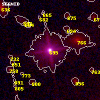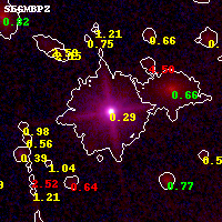 Object #695 x,y = (4066, 4327) RA, Dec = (01:02:54.192, -49:15:02.16) = (15.72580, -49.25060) BPZ = 0.293 [0.261--0.409] type = 9.10 (SB2_B10 - SB3_B10) chisq2 = 0.43 ODDS = 0.83 z_cluster = 0.870