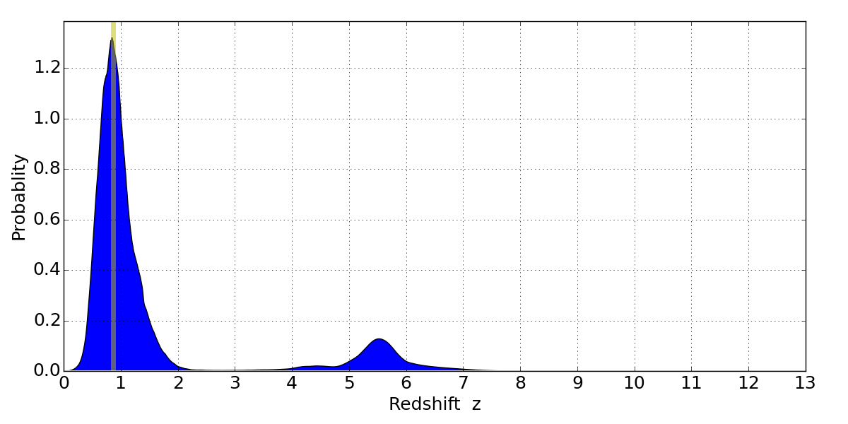 Best viewed in a wide browser window (1200 pixels or more). Download SED & P(z) plots to view larger versions.