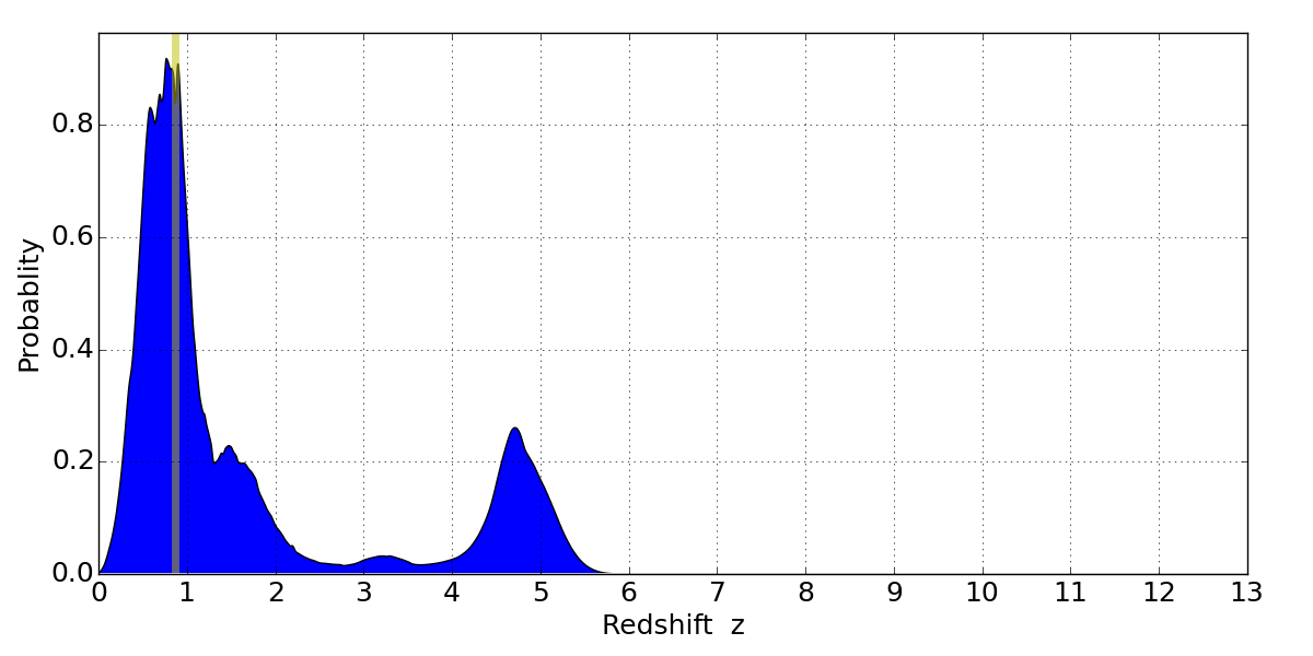 Best viewed in a wide browser window (1200 pixels or more). Download SED & P(z) plots to view larger versions.