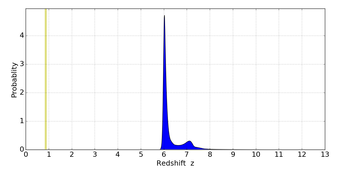 Object #10778   x,y = (4415, 7024)   RA, Dec = (01:02:52.080, -49:12:20.52) = (15.71700, -49.20570)   BPZ = 6.032 [5.947--7.784]   type = 9.10 (SB2_B10 - SB3_B10)   chisq2 = 0.25   ODDS = 0.74   z_cluster = 0.870