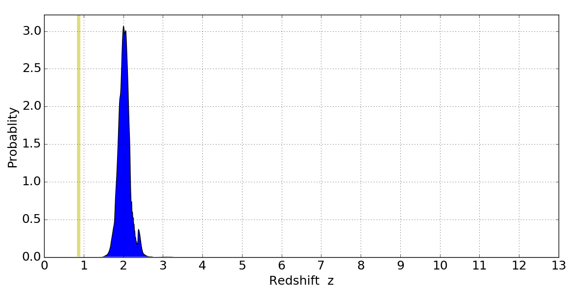 Object #14390   x,y = (3952, 5699)   RA, Dec = (01:02:54.912, -49:13:40.08) = (15.72880, -49.22780)   BPZ = 2.008 [1.741--2.400]   type = 8.50 (SB2_B10 - SB1_B10)   chisq2 = 0.28   ODDS = 0.64   z_cluster = 0.870
