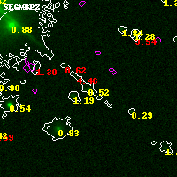 Object #1596   x,y = (2234, 1151)   RA, Dec = (01:03:05.448, -49:18:12.96) = (15.77270, -49.30360)   BPZ = 0.521 [0.278--4.165]   type = 7.20 (Scd_B10 - SB1_B10)   chisq2 = 0.39   ODDS = 0.29   z_cluster = 0.870