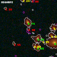 Black segments are analyzed here. Roll mouse over color images to view segments. Best viewed in a wide browser window (1200 pixels or more). Download SED & P(z) plots to view larger versions.