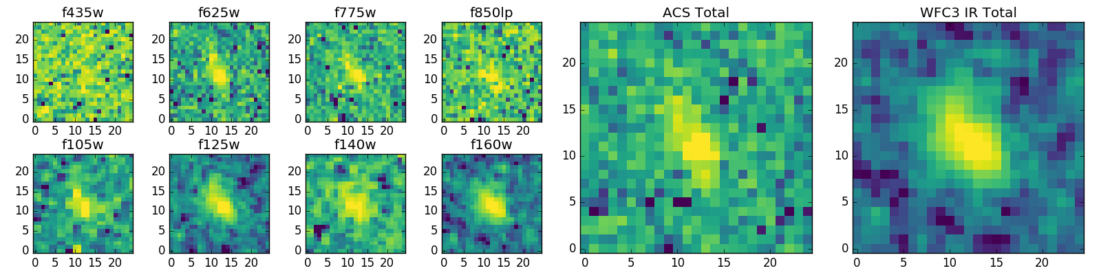 Black segments are analyzed here. Roll mouse over color images to view segments. Best viewed in a wide browser window (1200 pixels or more). Download SED & P(z) plots to view larger versions.
