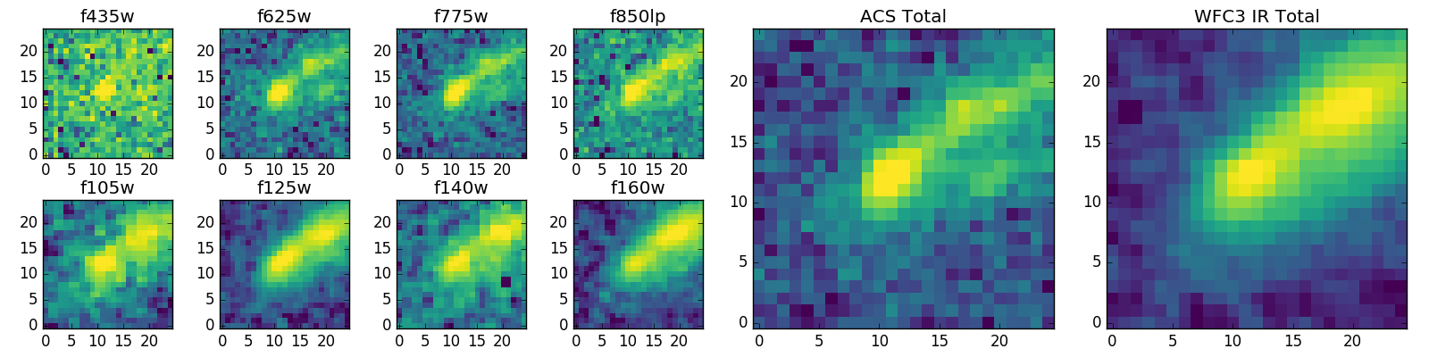 Black segments are analyzed here. Roll mouse over color images to view segments. Best viewed in a wide browser window (1200 pixels or more). Download SED & P(z) plots to view larger versions.