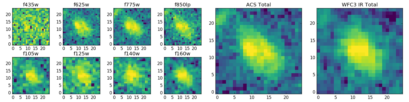 Black segments are analyzed here. Roll mouse over color images to view segments. Best viewed in a wide browser window (1200 pixels or more). Download SED & P(z) plots to view larger versions.