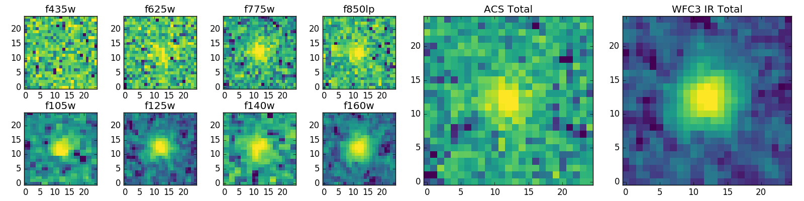 Black segments are analyzed here. Roll mouse over color images to view segments. Best viewed in a wide browser window (1200 pixels or more). Download SED & P(z) plots to view larger versions.