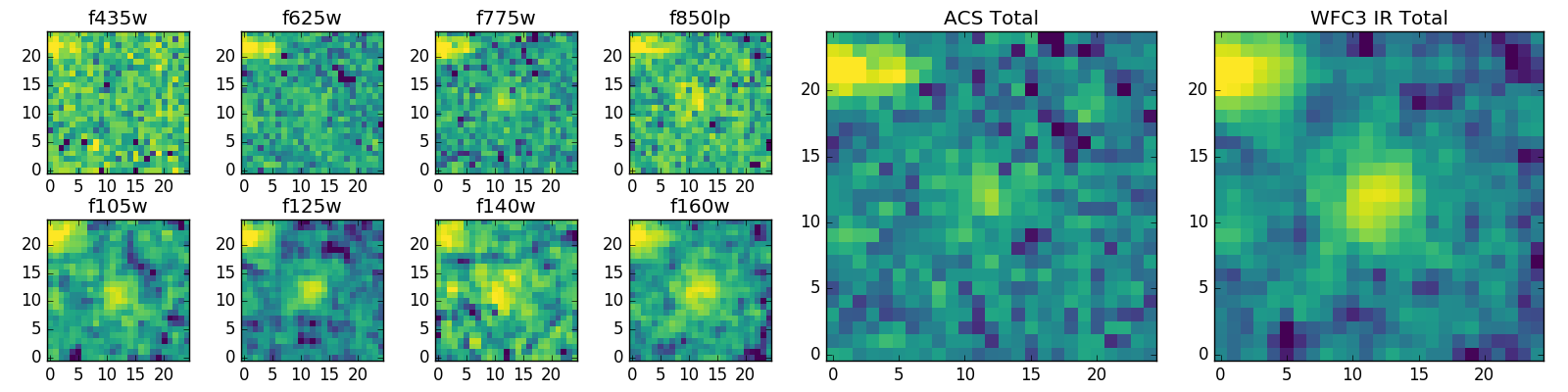 Black segments are analyzed here. Roll mouse over color images to view segments. Best viewed in a wide browser window (1200 pixels or more). Download SED & P(z) plots to view larger versions.