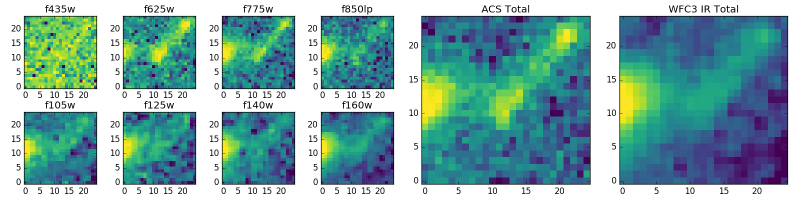 Black segments are analyzed here. Roll mouse over color images to view segments. Best viewed in a wide browser window (1200 pixels or more). Download SED & P(z) plots to view larger versions.