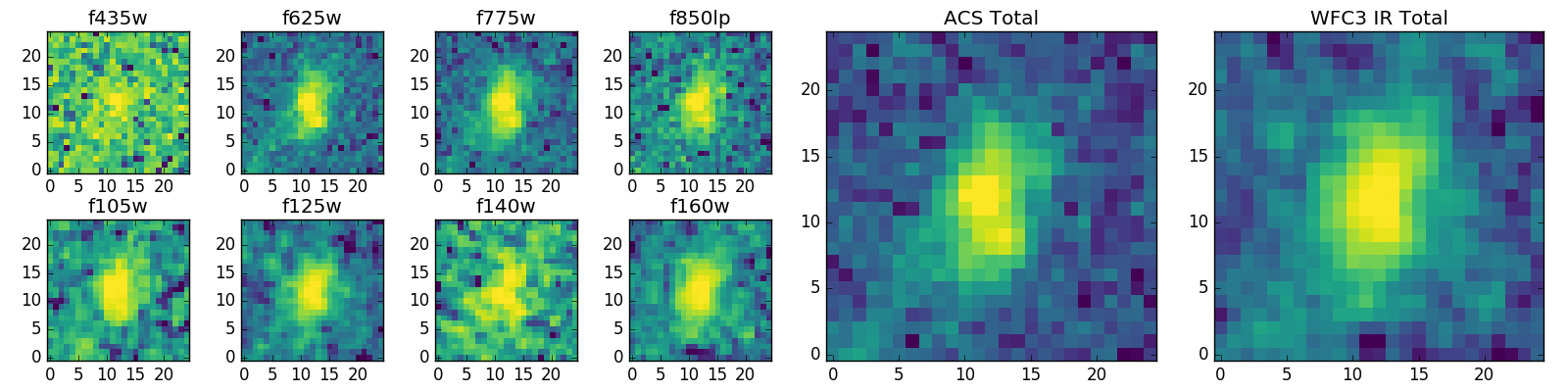 Black segments are analyzed here. Roll mouse over color images to view segments. Best viewed in a wide browser window (1200 pixels or more). Download SED & P(z) plots to view larger versions.