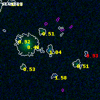 Black segments are analyzed here. Roll mouse over color images to view segments. Best viewed in a wide browser window (1200 pixels or more). Download SED & P(z) plots to view larger versions.