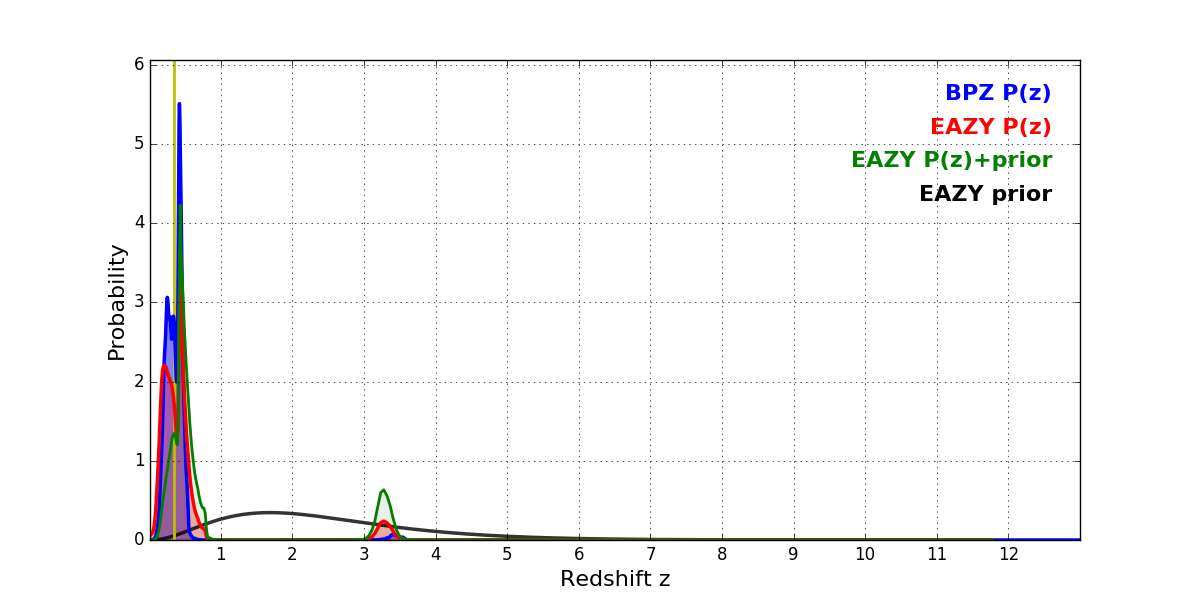 In P(z) plots: Yellow lines mark the cluster redshift z = 0.352,