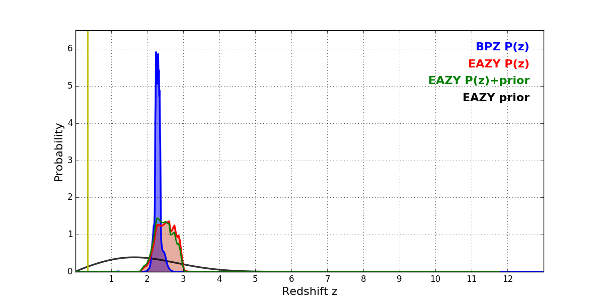 In P(z) plots: Yellow lines mark the cluster redshift z = 0.352,