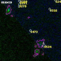 Black segments are analyzed here. Roll mouse over color images to view segments. Best viewed in a wide browser window (1200 pixels or more). Download SED & P(z) plots to view larger versions.