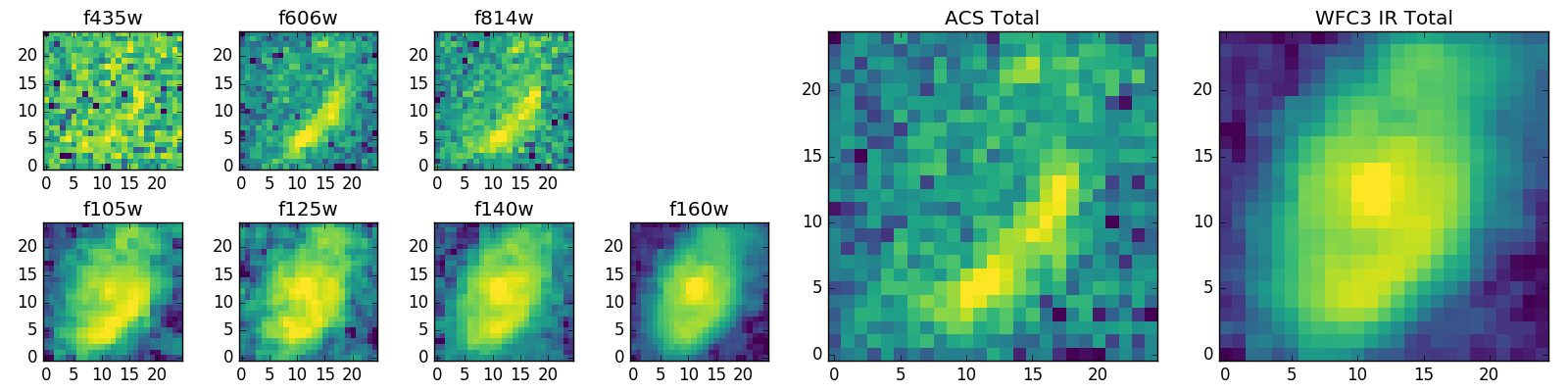 Black segments are analyzed here. Roll mouse over color images to view segments. Best viewed in a wide browser window (1200 pixels or more). Download SED & P(z) plots to view larger versions.