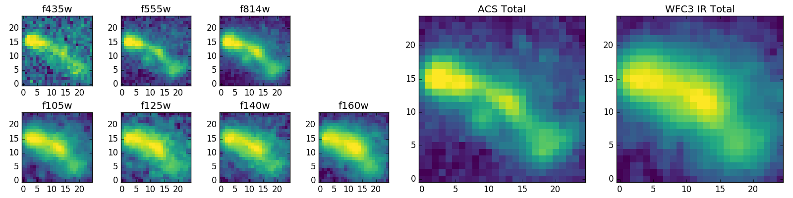 Black segments are analyzed here. Roll mouse over color images to view segments. Best viewed in a wide browser window (1200 pixels or more). Download SED & P(z) plots to view larger versions.