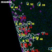 Black segments are analyzed here. Roll mouse over color images to view segments. Best viewed in a wide browser window (1200 pixels or more). Download SED & P(z) plots to view larger versions.