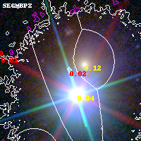 Object #268   x,y = (3363, 3908)   RA, Dec = (05:53:19.704, -33:41:17.88) = (88.33210, -33.68830)   BPZ = 0.016 [0.010--0.051]   type = 11.00 (SB11_A_0_l)   stellarity = 1.00   chisq2 = 287.76   ODDS = 0.99   z_cluster = 0.430