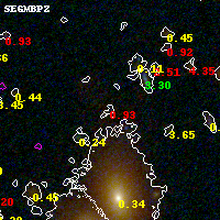 Black segments are analyzed here. Roll mouse over color images to view segments. Best viewed in a wide browser window (1200 pixels or more). Download SED & P(z) plots to view larger versions.