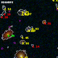 Black segments are analyzed here. Roll mouse over color images to view segments. Best viewed in a wide browser window (1200 pixels or more). Download SED & P(z) plots to view larger versions.
