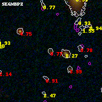 Object #3249   x,y = (3438, 2115)   RA, Dec = (05:53:19.344, -33:43:05.16) = (88.33060, -33.71810)   BPZ = 0.768 [0.417--3.836]   type = 8.90 (SB2_B10 - SB1_B10)   stellarity = 0.00   chisq2 = 2.30   ODDS = 0.37   z_cluster = 0.430