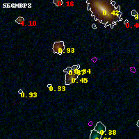 Black segments are analyzed here. Roll mouse over color images to view segments. Best viewed in a wide browser window (1200 pixels or more). Download SED & P(z) plots to view larger versions.