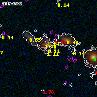 Object #3950   x,y = (2284, 1821)   RA, Dec = (05:53:24.888, -33:43:22.80) = (88.35370, -33.72300)   BPZ = 0.912 [0.423--1.299]   type = 7.90 (SB1_B10 - Scd_B10)   stellarity = 0.00   chisq2 = 0.98   ODDS = 0.39   z_cluster = 0.430