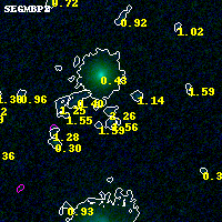 Object #4253   x,y = (3768, 1622)   RA, Dec = (05:53:17.760, -33:43:35.04) = (88.32400, -33.72640)   BPZ = 2.263 [0.135--2.959]   type = 8.60 (SB2_B10 - SB1_B10)   stellarity = 0.00   chisq2 = 0.00   ODDS = 0.13   z_cluster = 0.430