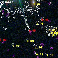 Black segments are analyzed here. Roll mouse over color images to view segments. Best viewed in a wide browser window (1200 pixels or more). Download SED & P(z) plots to view larger versions.