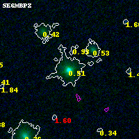 Black segments are analyzed here. Roll mouse over color images to view segments. Best viewed in a wide browser window (1200 pixels or more). Download SED & P(z) plots to view larger versions.