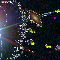 Black segments are analyzed here. Roll mouse over color images to view segments. Best viewed in a wide browser window (1200 pixels or more). Download SED & P(z) plots to view larger versions.