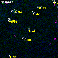 Object #591   x,y = (1376, 3773)   RA, Dec = (05:53:29.256, -33:41:25.80) = (88.37190, -33.69050)   BPZ = 1.126 [0.464--2.186]   type = 9.00 (SB2_B10)   stellarity = 0.97   chisq2 = 0.03   ODDS = 0.17   z_cluster = 0.430